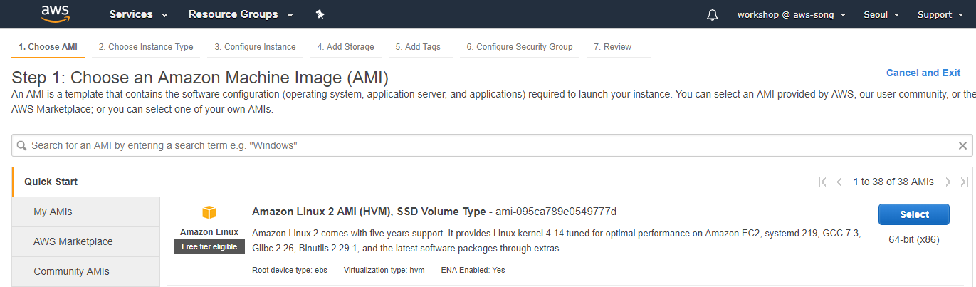 Seoul Region에서 Amazon Linux 2 AMI로 Instance 생성