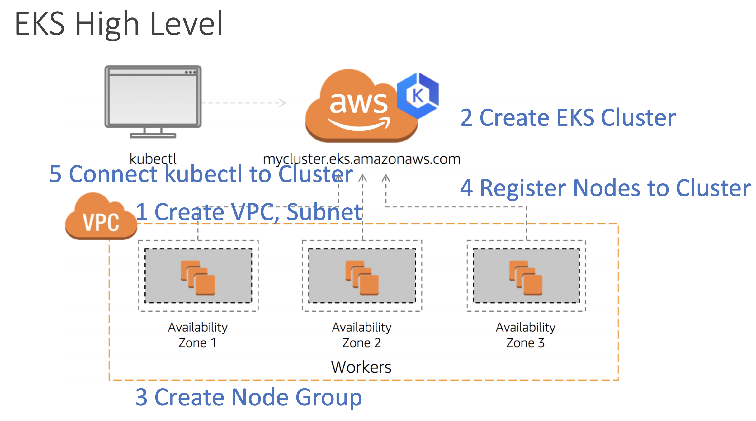 Amazon EKS Workshop In this workshop, we will explore multiple ways to configure VPC, ALB, and EC2 Kubernetes workers, and Amazon Elastic Kubernetes Service.