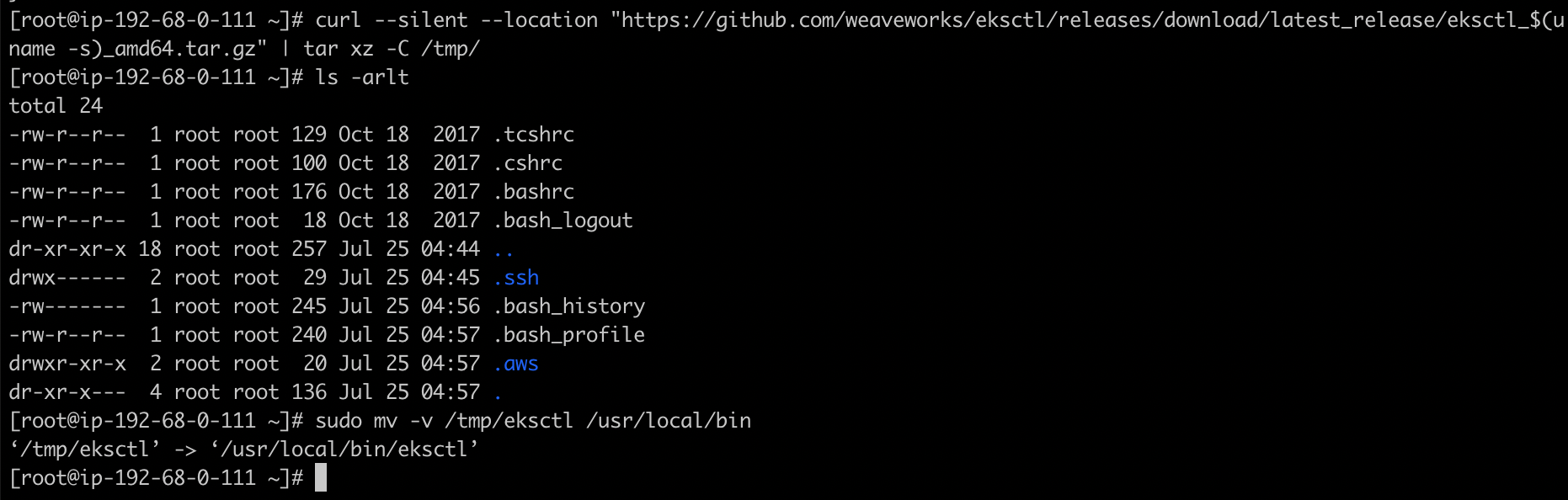 curl --silent --location "https://github.com/weaveworks/eksctl/releases/download/latest_release/eksctl_$(uname -s)_amd64.tar.gz" | tar xz -C /tmp/