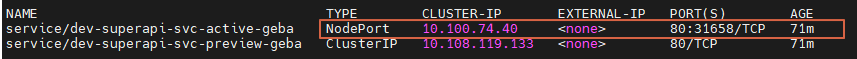 두 설정 모두 Kubernetes 서비스 리소스를 참조합니다. 다음은 activeService입니다